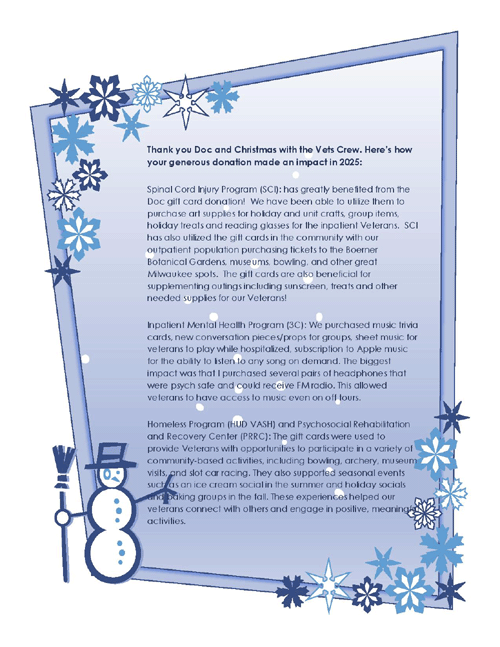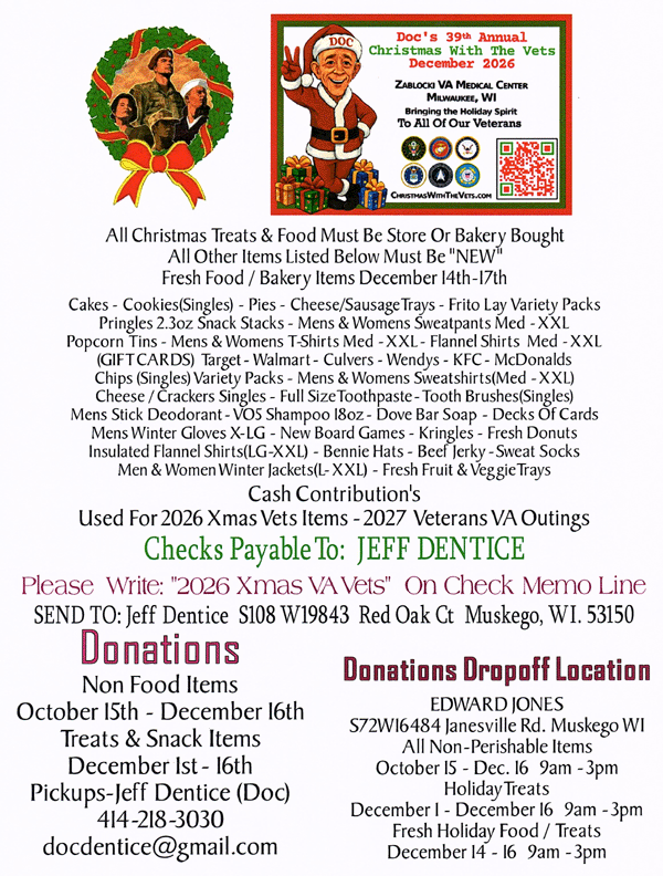 Donations for the Vets At Dom123 at Zablocki VA.