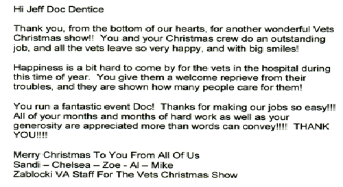 Christmas to our Veterans at the Zablocki VA hospital.