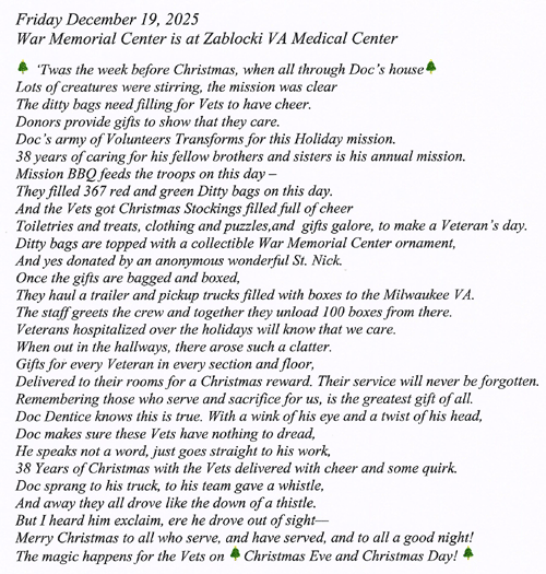Christmas Eve Trip To Visit Milwaukee's Veterans